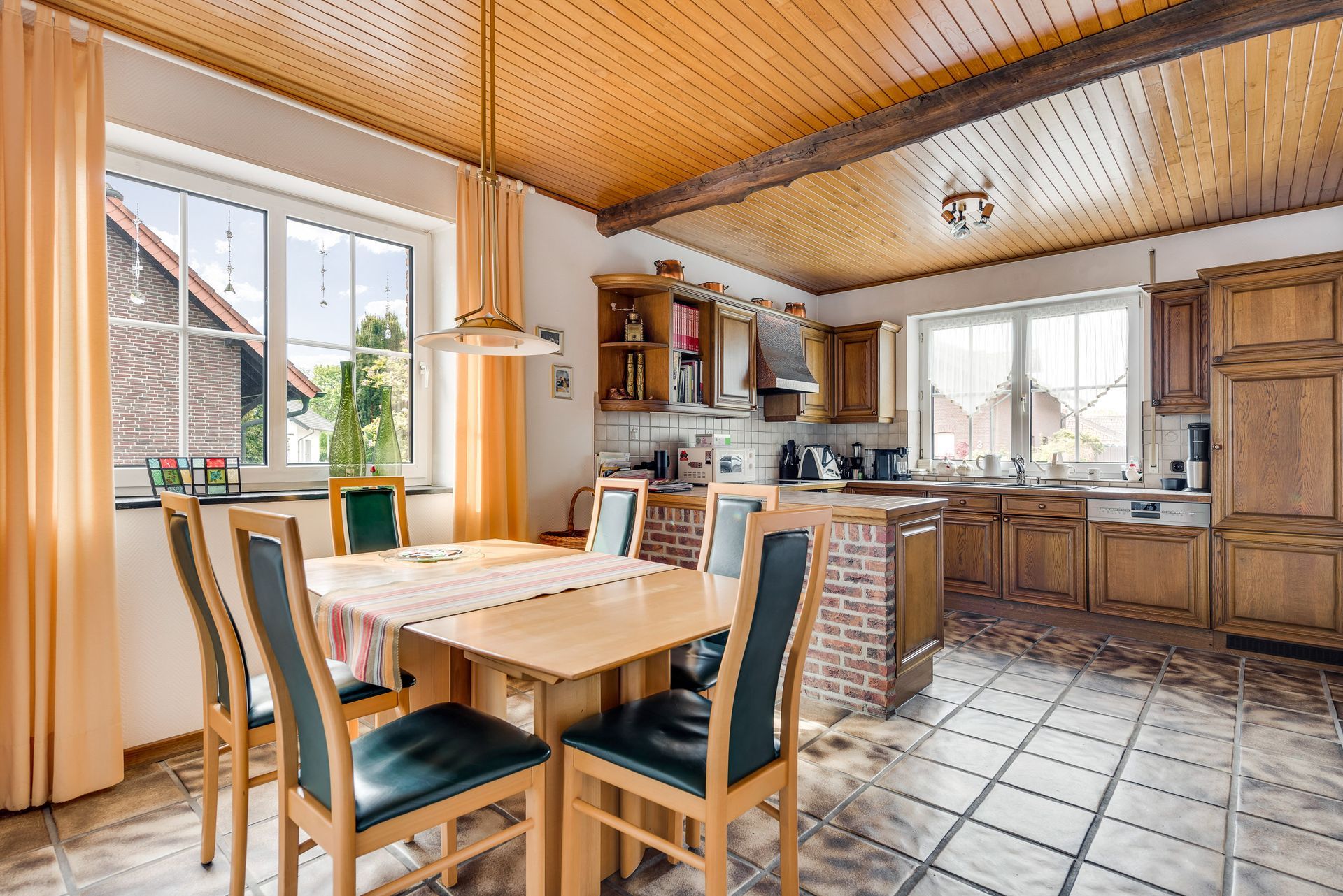 Wohnküche (5,38 x 3,43 m) mit Einbauküche mit Backofen, Geschirrspüler, Kühlschrank, keramischer Kochplatte und Dunstabzugshaube. Die Geräte wurden im Laufe der letzten 3 Jahre erneuert.