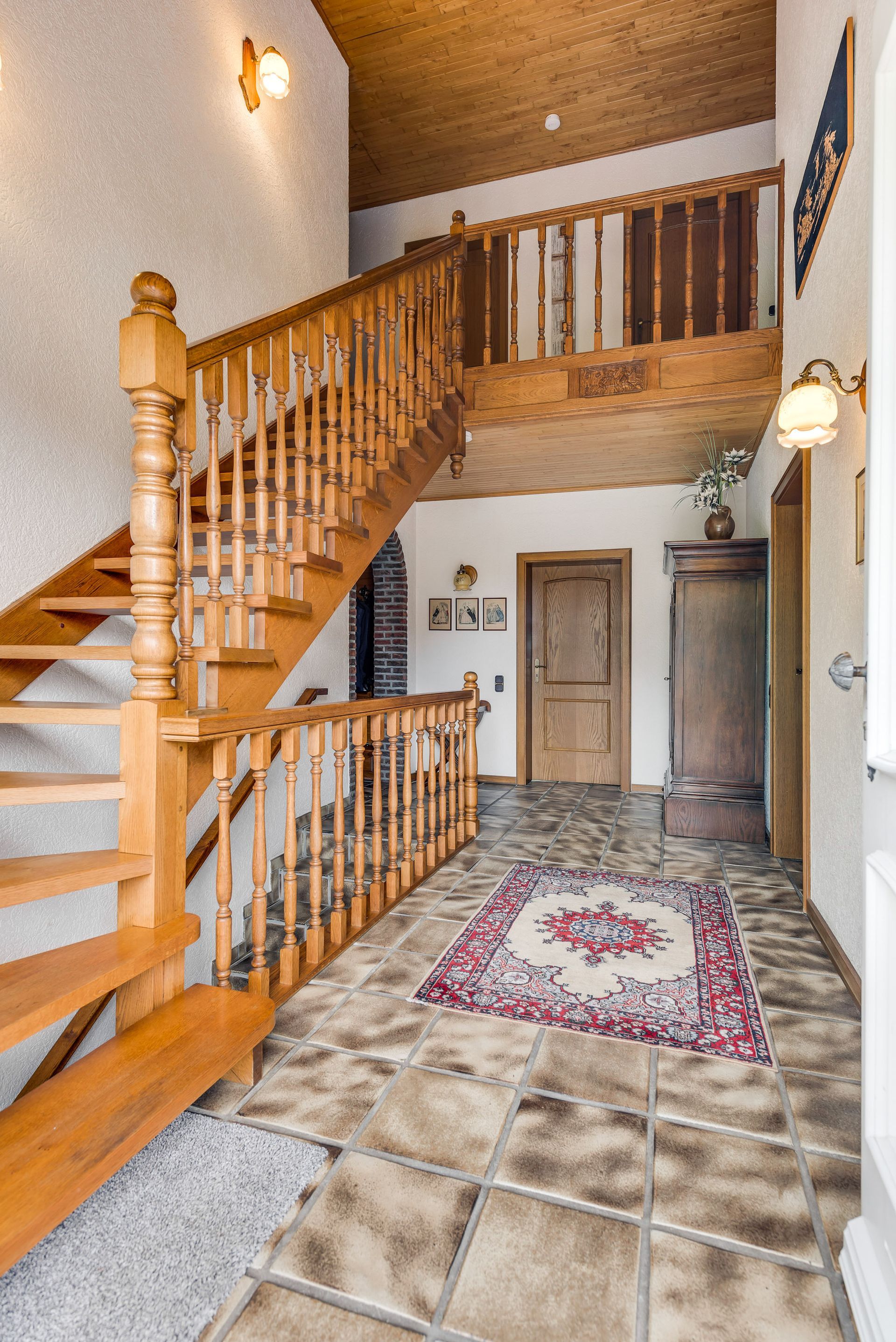 Flur mit Galerie und schöner Treppe.
