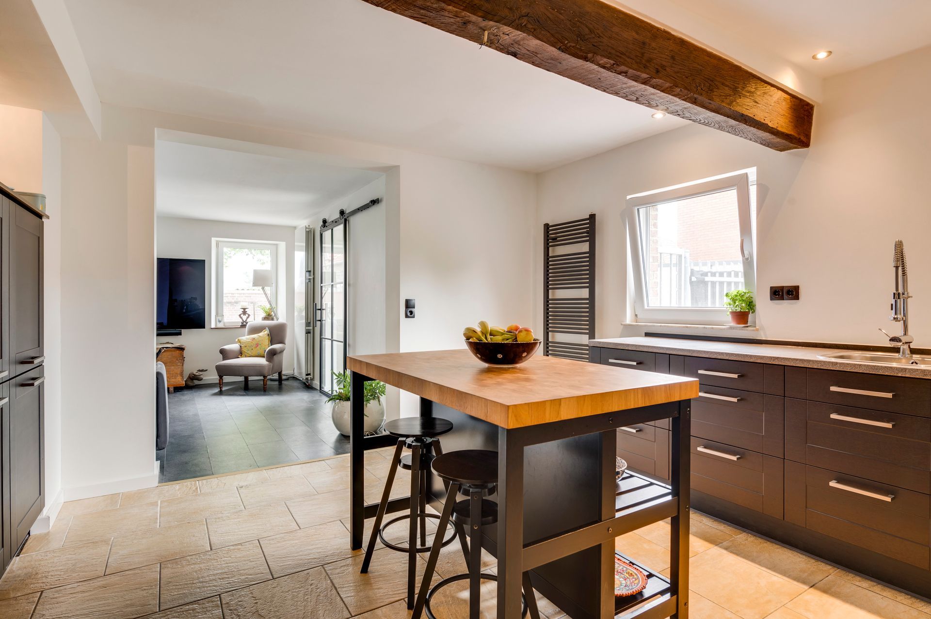 Der Wohnbereich mit 2 Schlafzimmern, Wohnküche, Wohn- und Esszimmer, Badezimmer und Hauswirtschaftsraum befindet sich im Erdgeschoss, was es altersgerecht macht.
