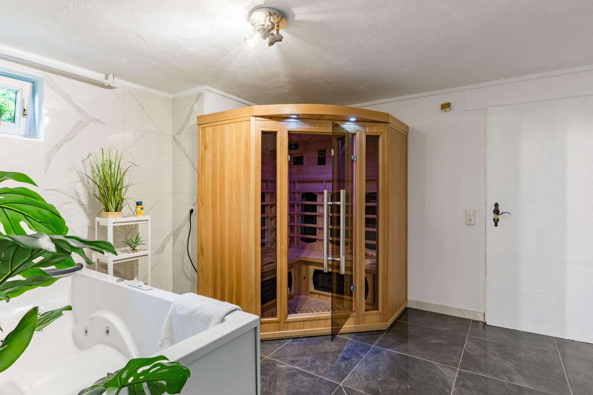 Das Haus verfügt unter anderem über ein luxuriöses Badezimmer und 3 Schlafzimmer im Erdgeschoss sowie diverse Hobbyräume mit einem zweiten luxuriösen Badezimmer im Souterrain. Außerdem hat dieses Souterrain eine gute Stehhöhe, Heizung und ausgezeichneten Tageslichtdurchflutung.