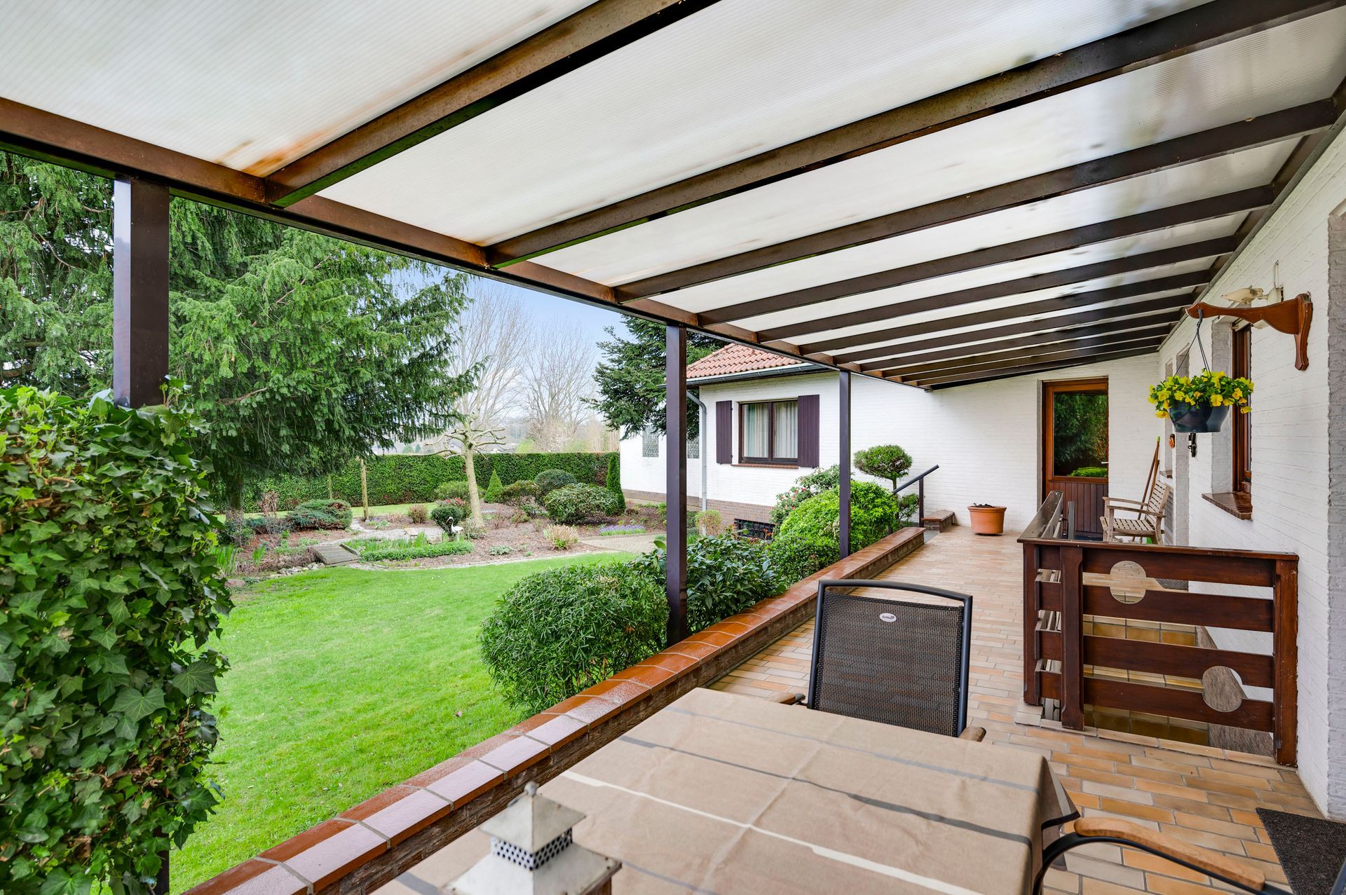 Klassische, sehr geräumige Bungalow mit freistehender Garage/Werkstatt, vollständigem Keller, Garten und überdachter Terrasse.