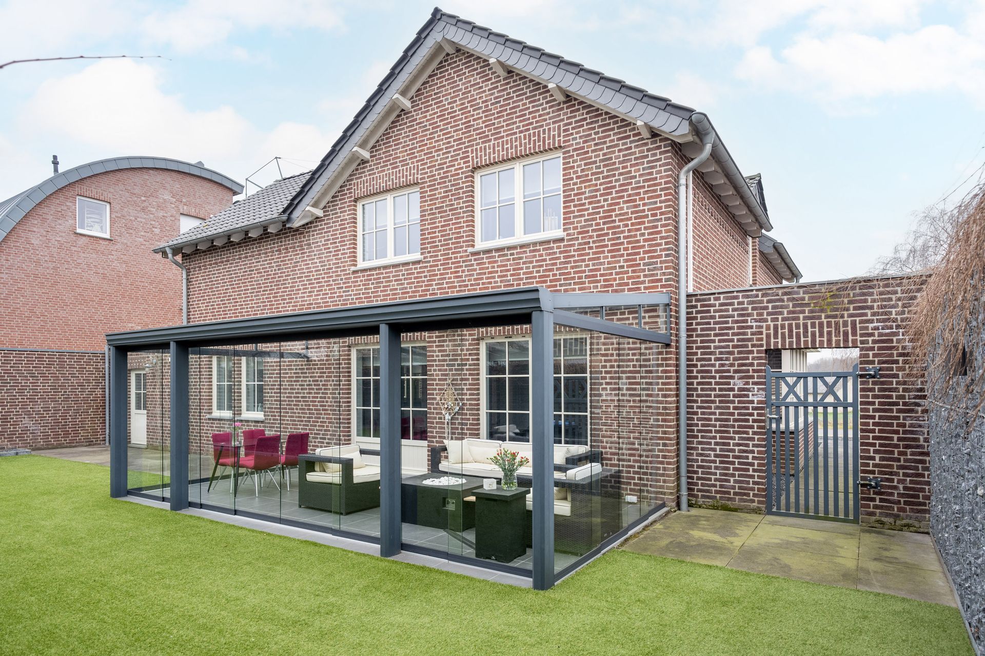 • Besonders schöner Wintergarten mit Glasschiebewänden.
